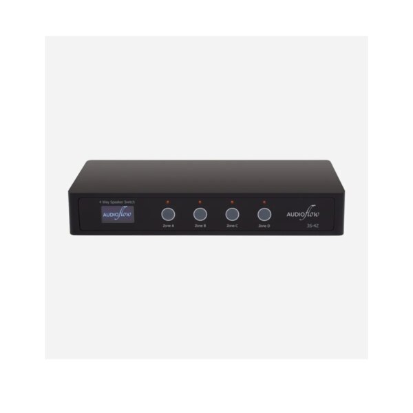 The 4-way speaker switch for separating out audio zones on a single Amp can be controlled completely wirelessly using the Audioflow App on your phone. This compliments streaming ecosystems such as Sonos and Bluesound as everything is completely wireless.