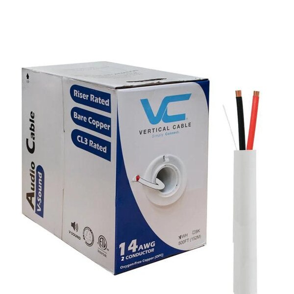14/2 Speaker 500ft White(0)No Reviews yet Pinit MSRP: $172.00 Please log in to see price or purchase this item Quantity discounts available QuantityPrice SKU: 209-2320 Brand: Vertical Cable Details Vertical Cable Audio Cable, 14AWG, 2 Conductor, Stranded (41 Strand), 500', PVC Jacket, Pull Box, White Specifications Vertical Cable Audio Cable, 14AWG, 2 Conductor, Stranded (41 Strand), 500', PVC Jacket, Pull Box... DetailsSpecifications Back Vertical Cable Audio Cable, 14AWG, 2 Conductor, Stranded (41 Strand), 500', PVC Jacket, Pull Box, White Back Vertical Cable Audio Cable, 14AWG, 2 Conductor, Stranded (41 Strand), 500', PVC Jacket, Pull Box... Reviews 0 Back Ratings & ReviewsNo reviews availableBe the first to Write a Review